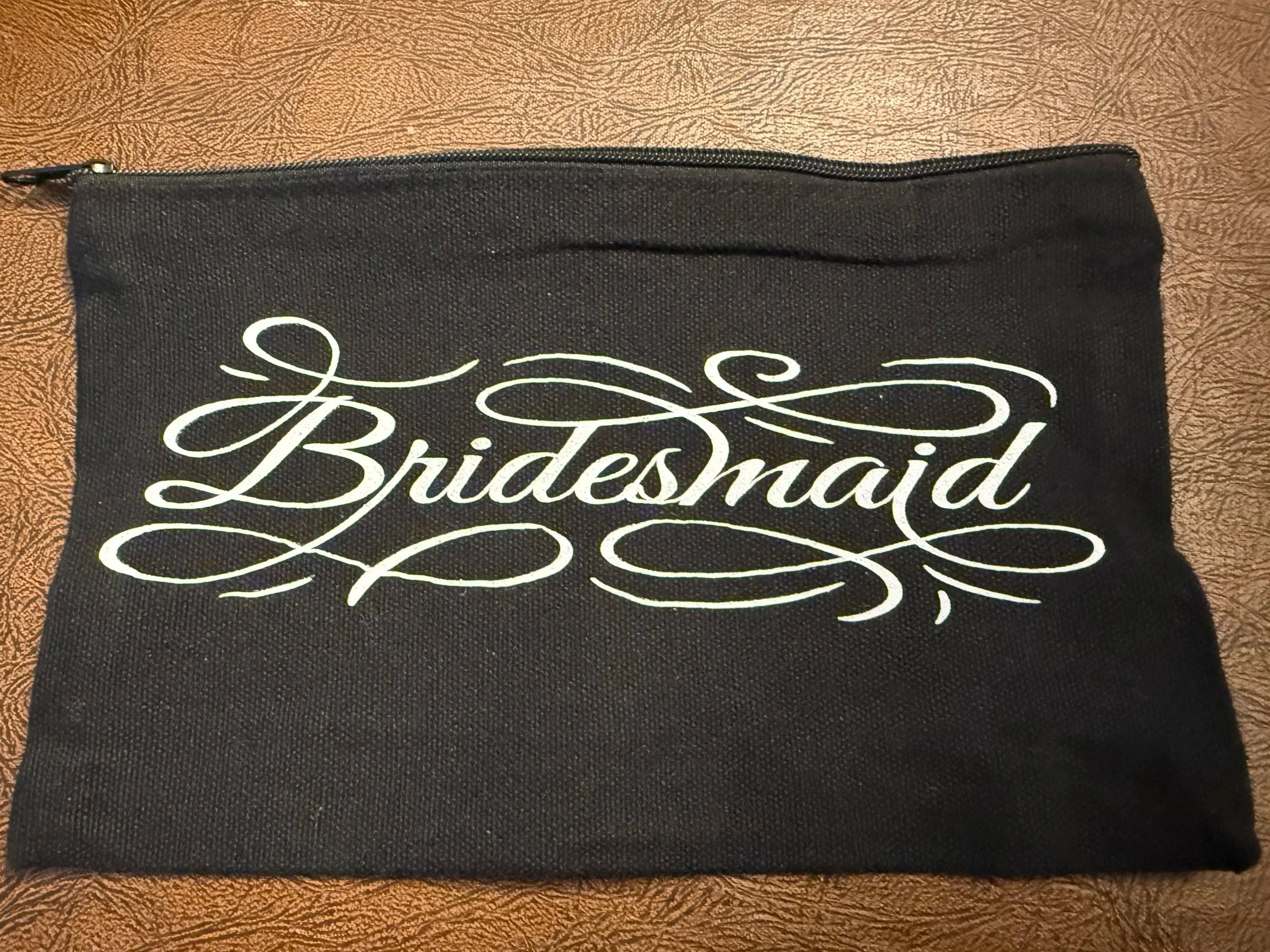 Shop here for your favors for your wedding party.Something For All Your Friends to Enjoy! Bridesmaid Cosmetic/Jewelry Bag-Custom $35.00 Groomsmen Entourage Flask - Custom $47.00